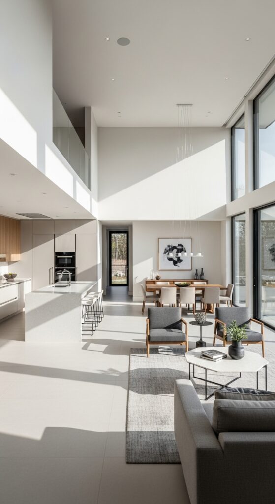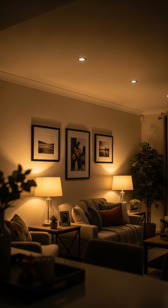 Aim for three layers of light in every room. Ambient lighting provides overall illumination. Task lighting focuses on work areas like counters and reading spots. Accent lighting highlights artwork or architectural features. The combination eliminates harsh shadows and creates warmth.
