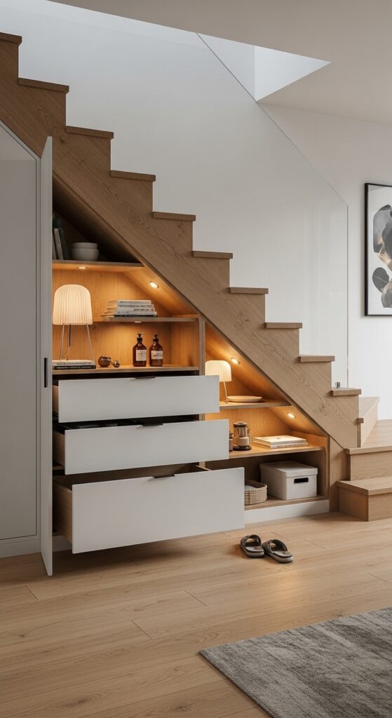 That awkward triangular space under your staircase is wasted real estate. Converting it into functional storage or a compact office nook maximizes every square foot. This project is perfect for small homes where space is at a premium.